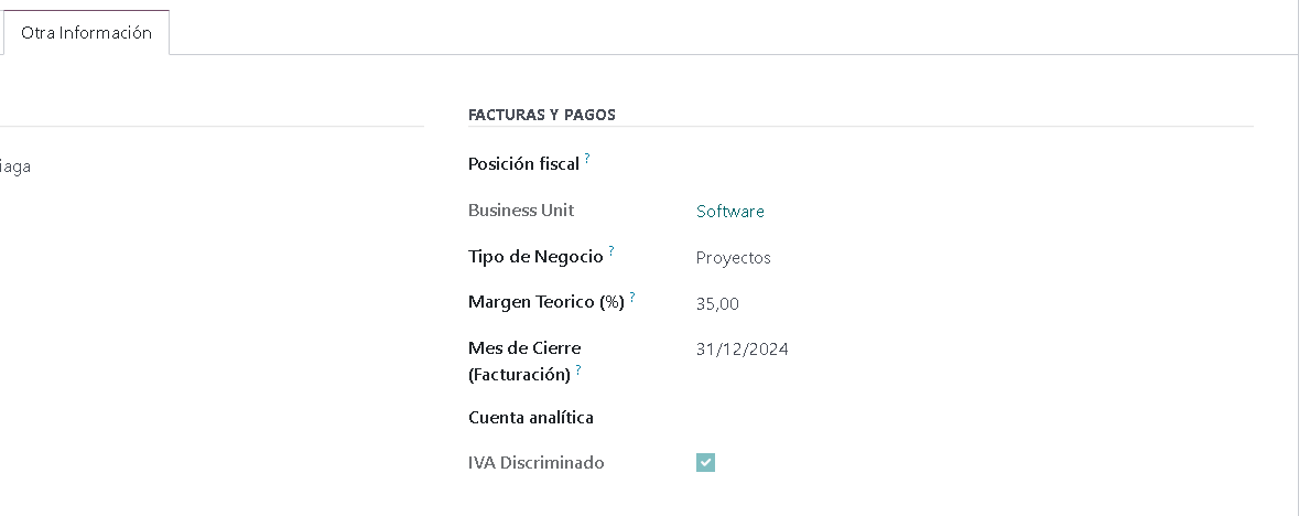 - Representa la unidad de negocio a la que pertenece la orden de venta o proyecto (por ejemplo: Software, Infraestructura, CCTV, Automatismos).